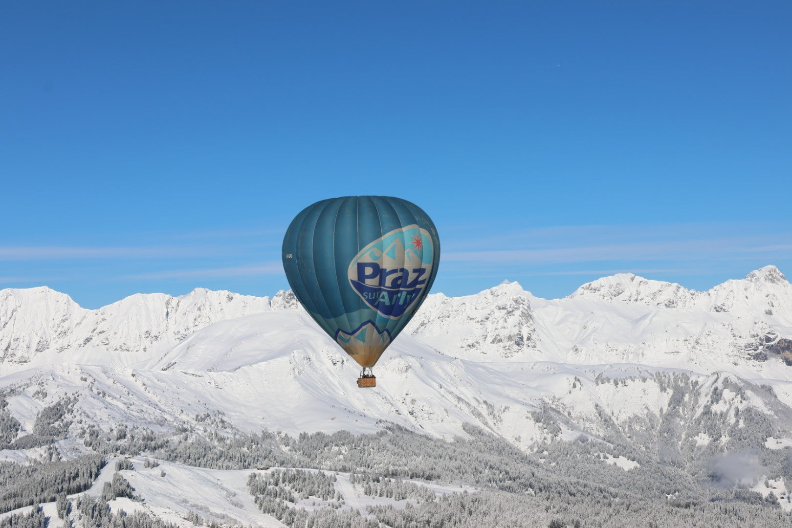 Alpes Montgolfière fait la promotion de Praz sur Arly avec un ballon aux couleurs de la Commune.